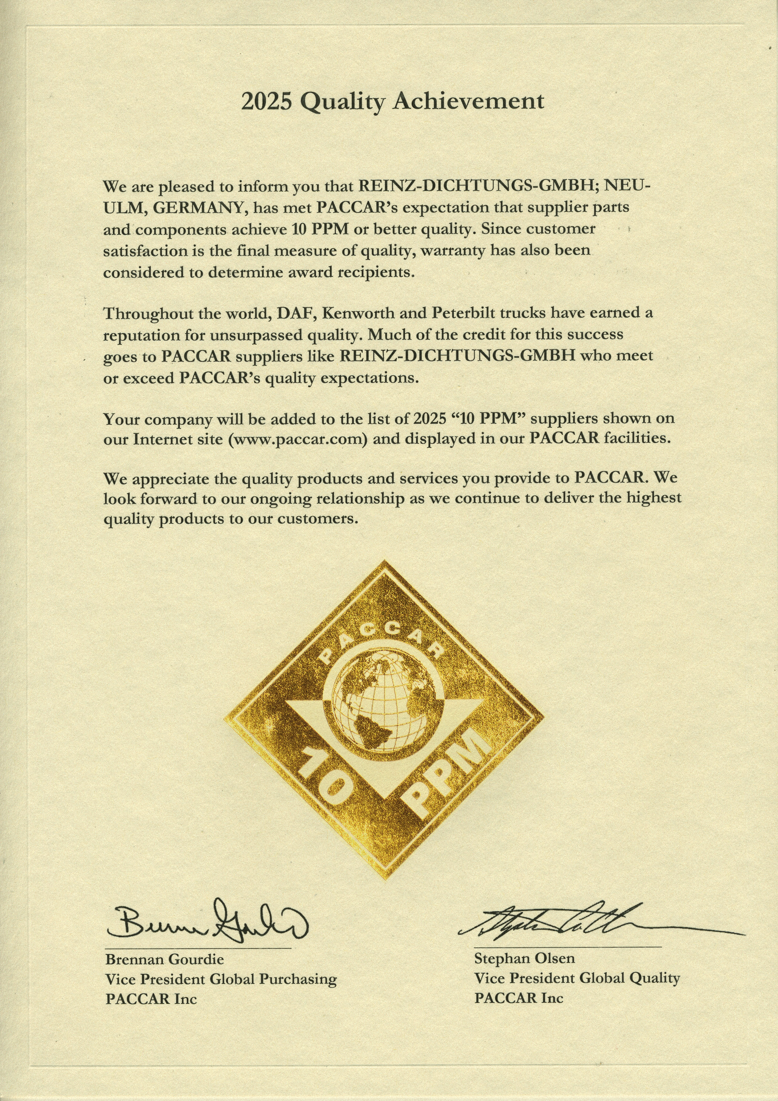 Special quality achievement from the brands DAF, Kenworth and Peterbilt trucks |